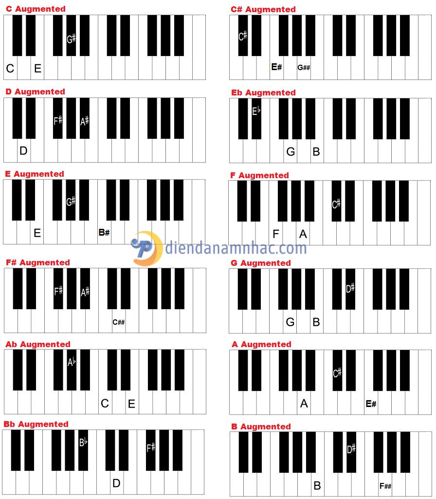 Danh sách 12 hợp âm tăng (Augmented) trên piano